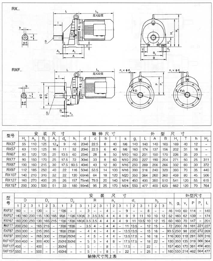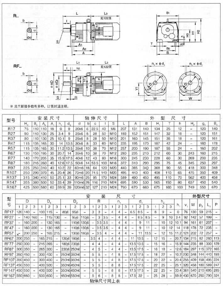R…F:底脚法兰安装  RM: 法兰安装带加长轴承箱