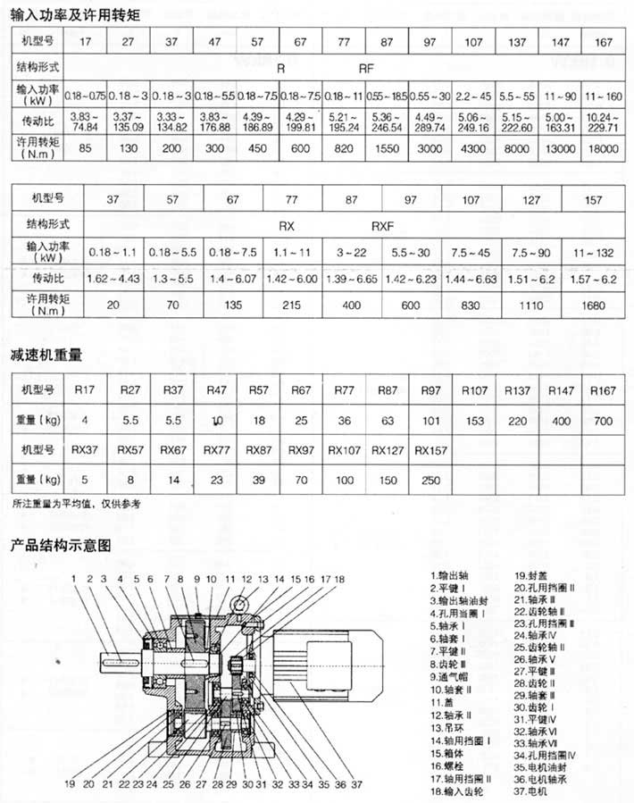 速比范围:R基本型3.33~289.74,RX型1.3~8.65,R/R组合型可达到27001