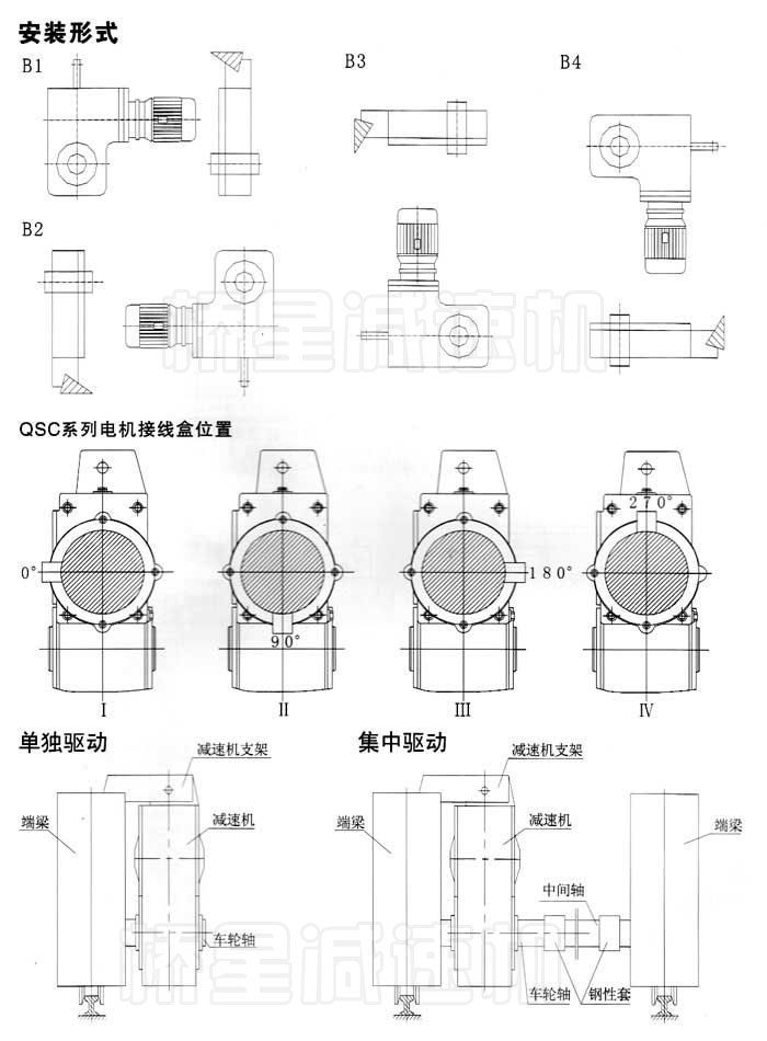 QS/QSC/QSF/QSK型三合一减速机融减速器、电动机、制动器与一体,结构紧凑,安装使用、维修便利,可根据各自的使用要求选配电动机,输出型式为渐开线花键、平键空心轴及实心轴等,既可单端输出,亦可双端输出。QS、QSF型为平行轴式减速机,适用于单、双梁桥工起重机的大、小车运行机构及冶金行业轧机、连铸机的辊道驱动:QSC、QSK为垂直轴式减速机,适用 于门式起重机的大车运行机构及有空间位置限制要求的其他传动机构。