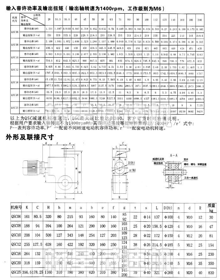 本样本专门针对起重运输机械行业编制,已充分考虑起重运输机械行业的产品特性,工程技术人员可根据主机设备的运行速度和所需要的扭矩或功率在输入功率及输出扭矩表中对应不同的机型按1:1选用所需配套的机型(已经考虑了安全系数n=2)。只要您选用的机型其配套电机功率≤容许功率就能满足您的使用需要。
