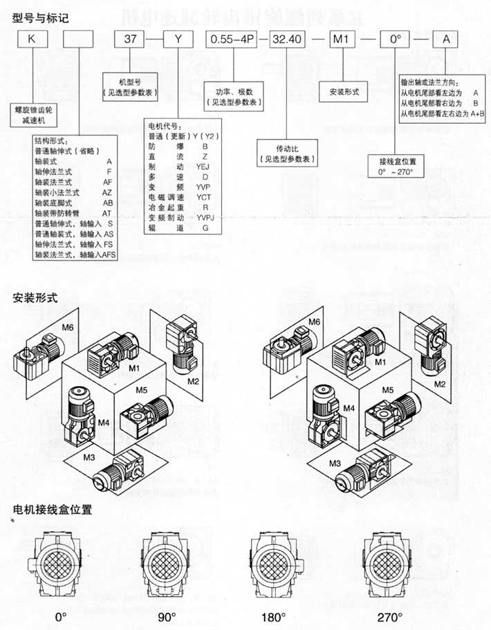 2、安装方式:底脚安装、空心轴安装、法兰安装、扭力臂安装、小法兰安装。